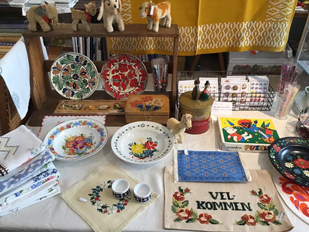 刺繍のクロス、エッグスタンド、ガラスボタン、可愛い木箱なども並んでます。
